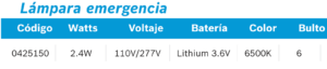 Categorías: Emergencia, Lámparas